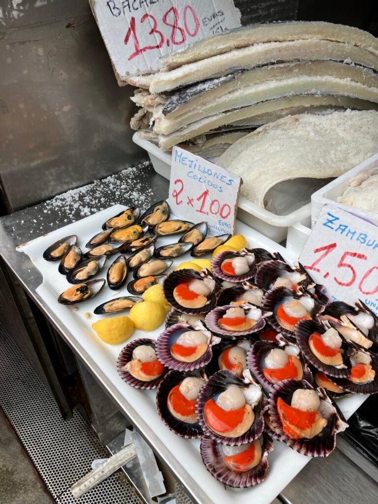 Probably in most cities of the world the best place to observe genuine, raw and local energy is the market, a place where tourists are welcome but not catered to too much. Atarazanas market in Malaga is such a place with its stained glass and beautiful architecture. Noisy, colorful and fully alive with small family stands. When we purchased some candied hibiscus flowers and prunes from Mario he offered that we can make a selfie with him, while he was talking excitedly about America, he knew his geography for sure. Lots of interesting seafood choices.