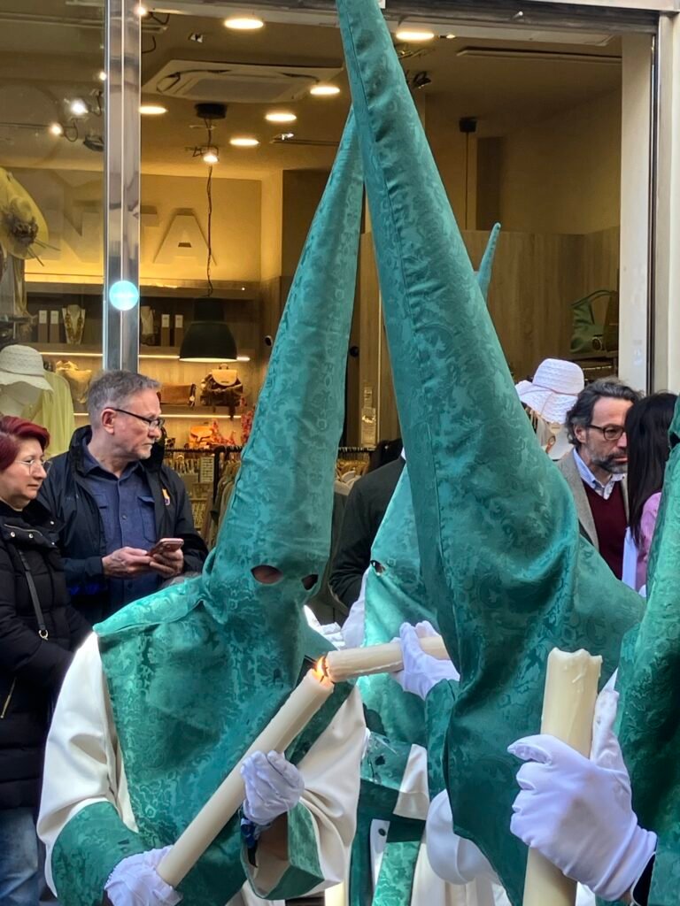 Each neighborhood of the city has its own brotherhood, men and sometimes women have the job to carry these extremely heavy thrones around the city. The route takes about 6 hours to complete with several stops along the way, including the cathedral. Big crowds are waiting for them at the end, at their local church to return. Here is a video that probably shows how difficult this is.