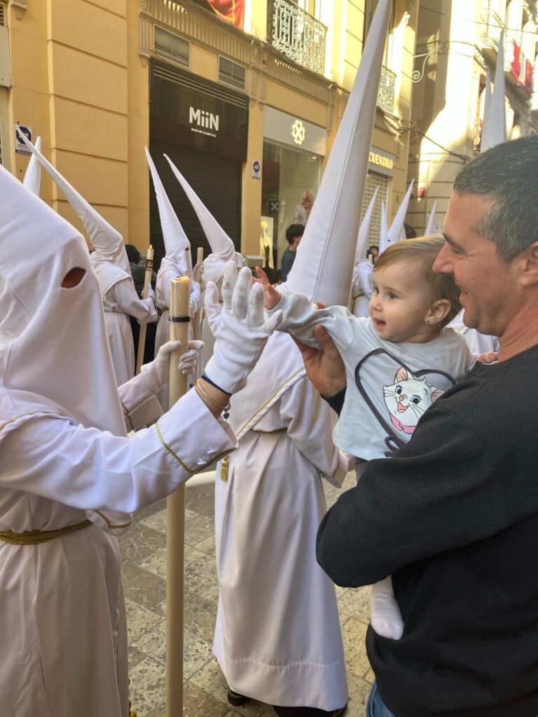People lining up the streets on the procession route. First you hear the drums, then the marching band, then the thrones are slowly getting closer and closer, carried by hundreds of man. The atmosphere must of been something similar in Jerusalem on that particular day. Well, let’s talk about the hood or mask, here they call it capirote, it has nothing to do with kkk, the customs they are related to are older than 300 years. They represent anonymous repentance before God. We also saw little children with small piece of aluminum foil in their hand asking the Nazarenos (people wearing the mask) to drip vax on the foil. Every day they accumulate more and more vax, growing their ball to represent their participation in holy week.