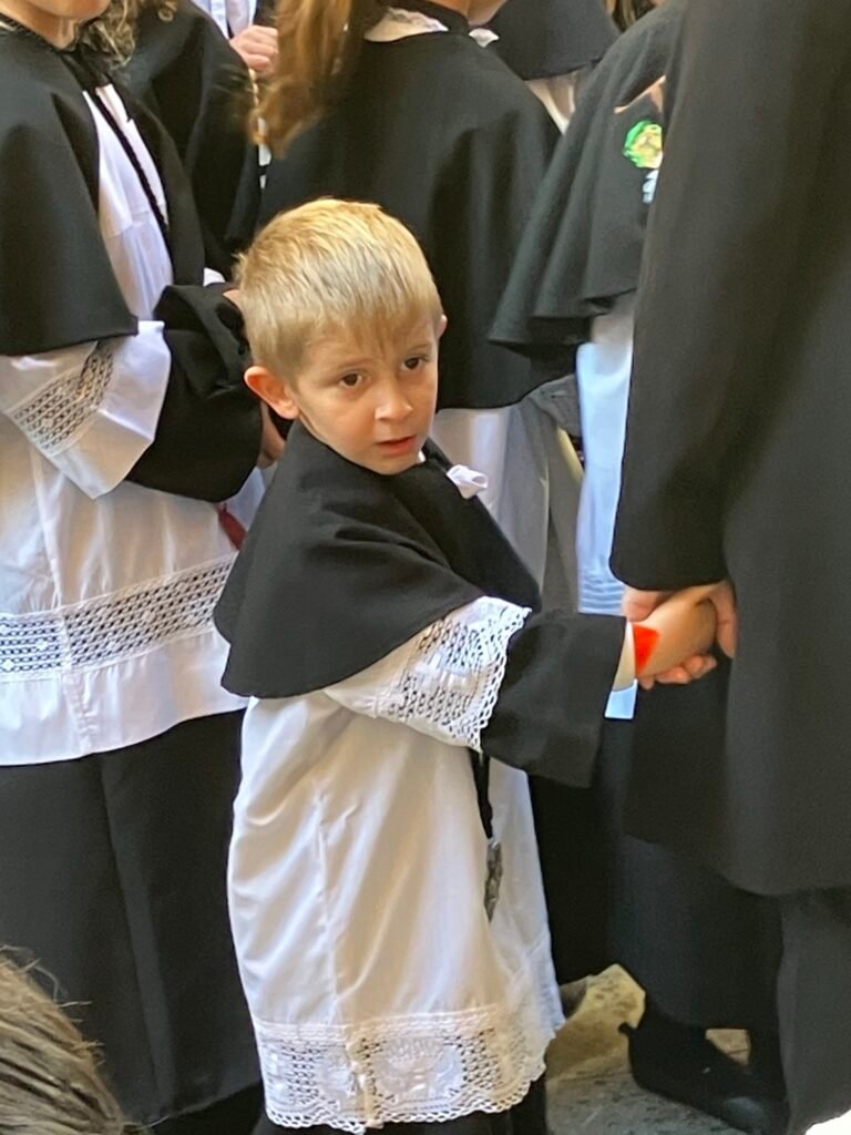 I don’t know if rudeness and feeling entitled always go together, but sadly here, it turns out frequently originates from American tourists. You know Krisztina, she always pays attention to make sure we don’t block anyone’s views when we pick our spot to watch the processions. We were just trying to find a place to stand, a family in the front row told us to keep moving to somewhere else, saying “what are you thinking, we came two hours early to secure this spot!” I guess for them all this is just a spectacle. No doubt they were right, but conflict so often rises from what is right and just, even when you could easily make space for others. As it happened two days later a Spanish family with three children, baby carriage, a grandma sitting on a small stool, pointed us to a little space behind them allowing us to stand there.