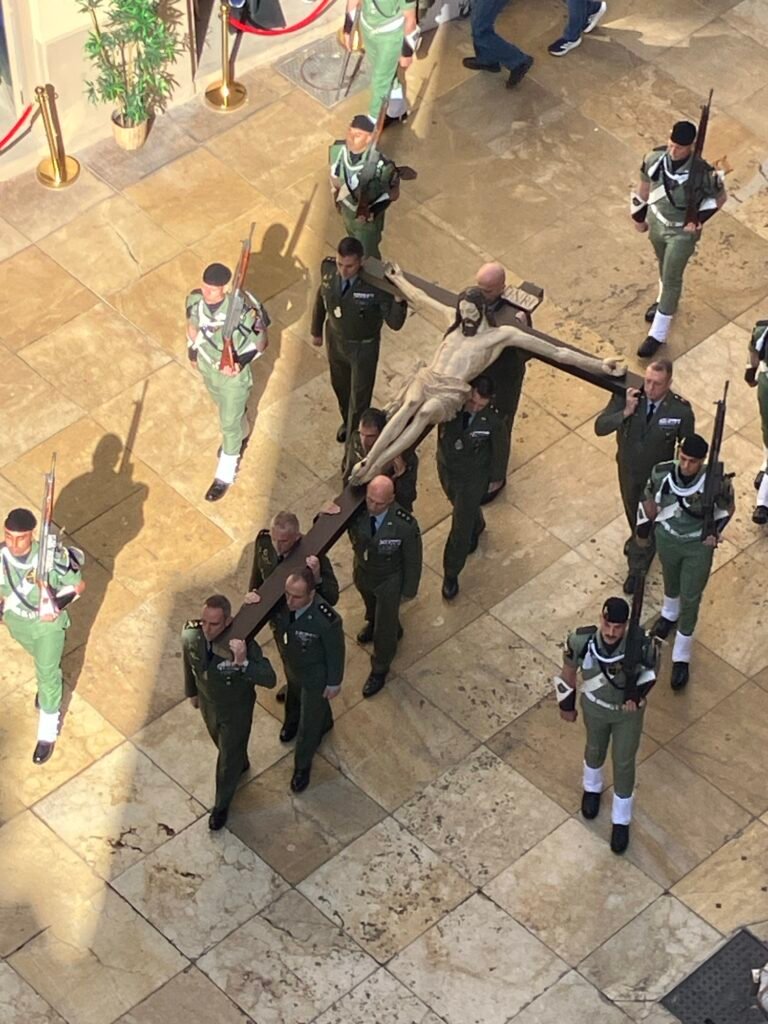 Just before we left our hotel to catch a train to Seville a military procession came by right below our balcony. All uniformed personel of the city and government is allowed to participate in Semana Santa, they don’t see this as a threat against the secular state. There was a constitutional challenge in 2011, but it did not succeed: “when a religious tradition is integrated into the social fabric of a particular group, it cannot be argued that public authorities intend to convey support for or adherence to religious tenets through it.”