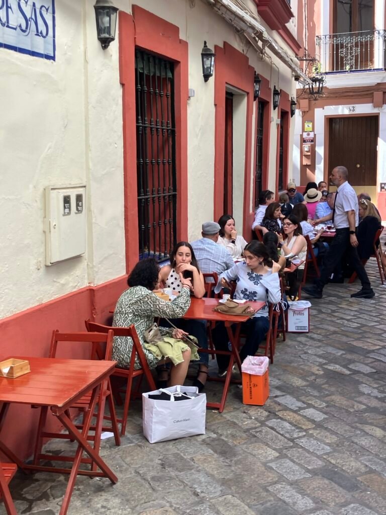 The dance, the songs, the guitars that erupt with such a powerful force, yes there is sadness in there and pain, but the raw passion what it makes it come alive. Flame of fire. Romani, moorish, jewish and Christian elements were whirling in front of our eyes yesterday. We went to a theater, the performance, the dancers were incredible to watch. Probably it was too good, with the lighting, background pictures, the sound quality. Originally these were not choreographed performances, just happenings at family gatherings, community settings in local pubs, spontaneous expressions of daily life. While here Seville we saw street dancers earlier, for me that was the real thing, closer to the original settings.